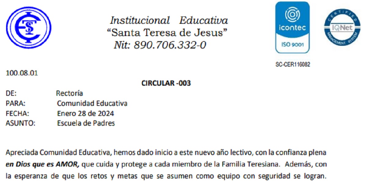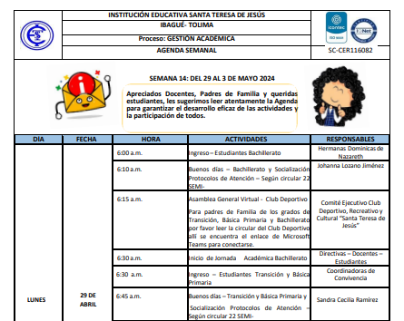 Todos los derechos reservados © 2020 Santa Teresa de Jesús - Ibagué.