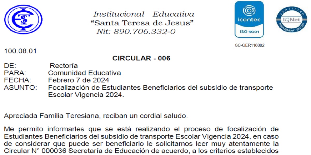 CIRCULAR - 107 DE: Rectoría PARA: Padres de Familia FECHA: Julio 24 de 2024 ASUNTO: Cupos 2025 Hermanas – Entrega de Informes Académicos III Periodo